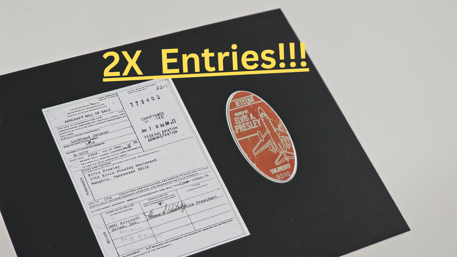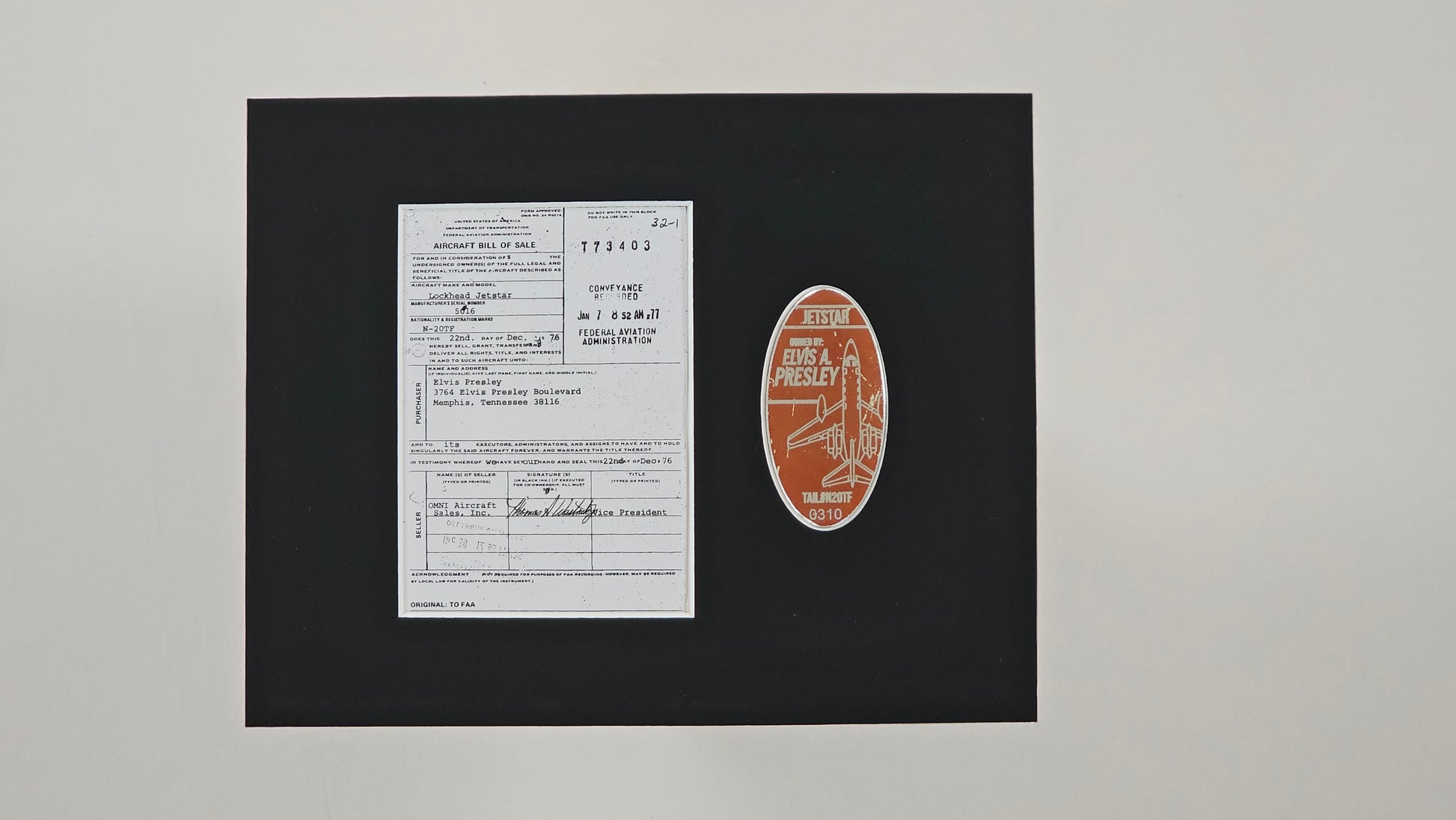 - custom matting of the tag, FAA bill of Sale, Certificate of authenticity, and picture of the private jet